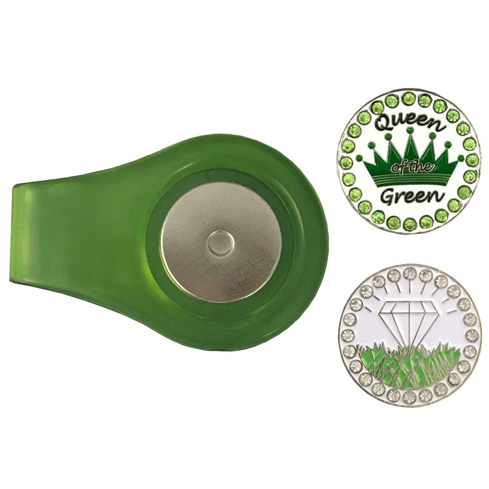 👑 Queen of the Green Bling Golf Ball Marker Pack with Green Clip – Regal. Sparkly. Strong.